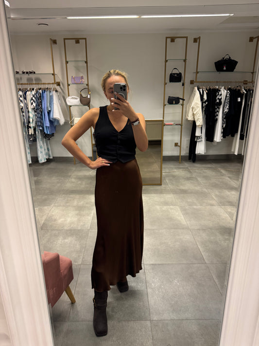 NuolaidaŠokoladinis satino sijonas