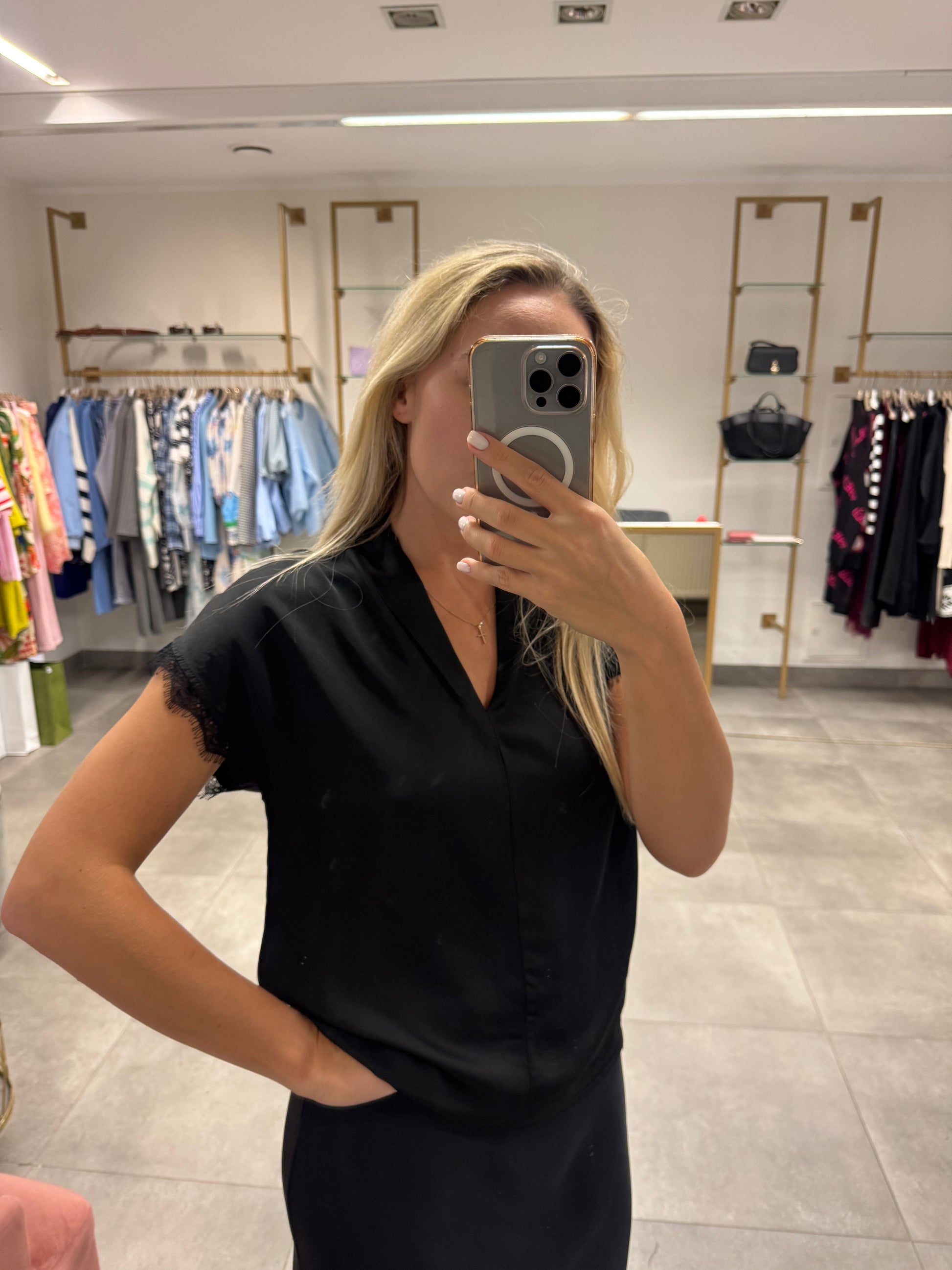 Juoda palaidinė su nėriniais