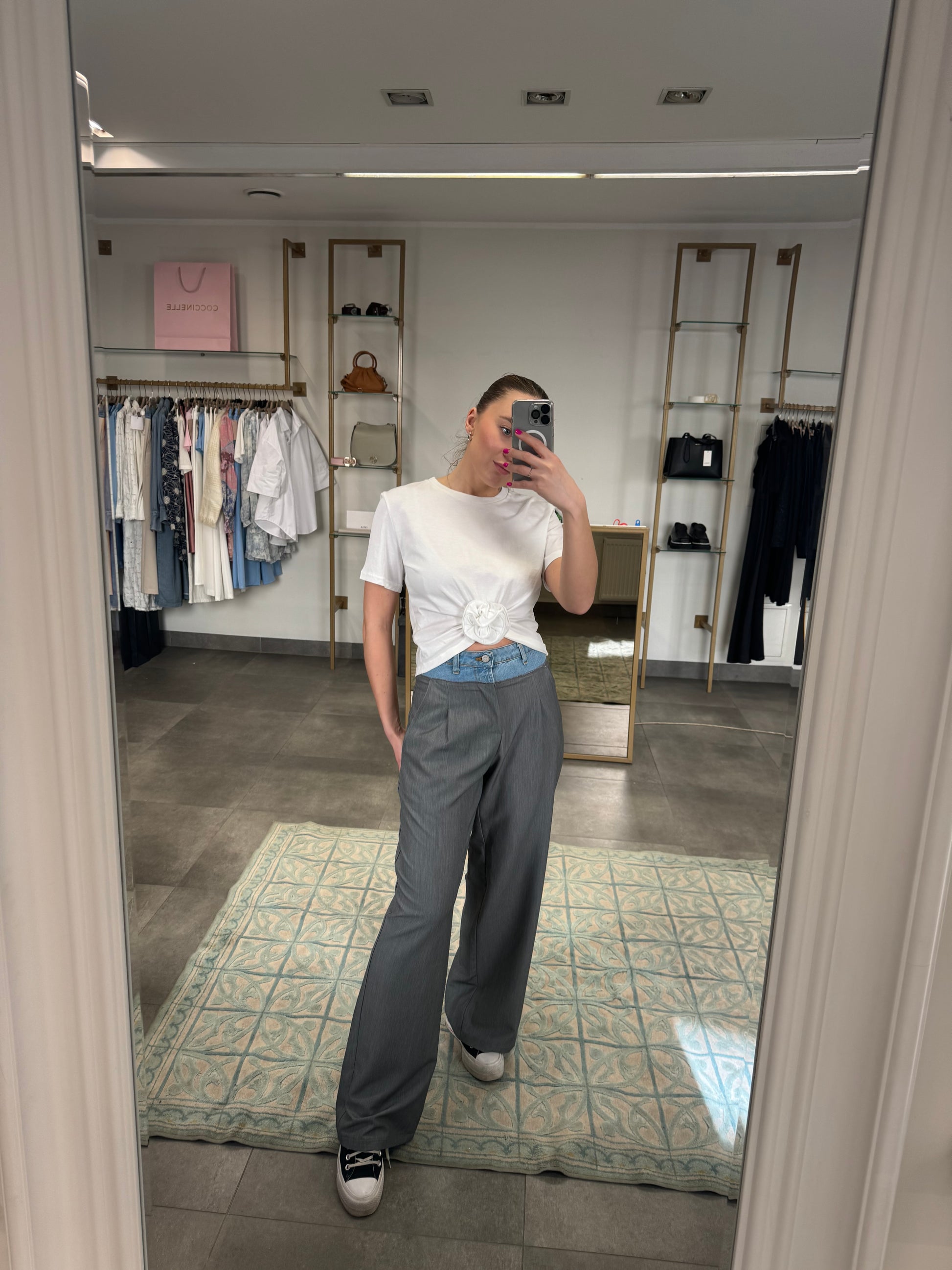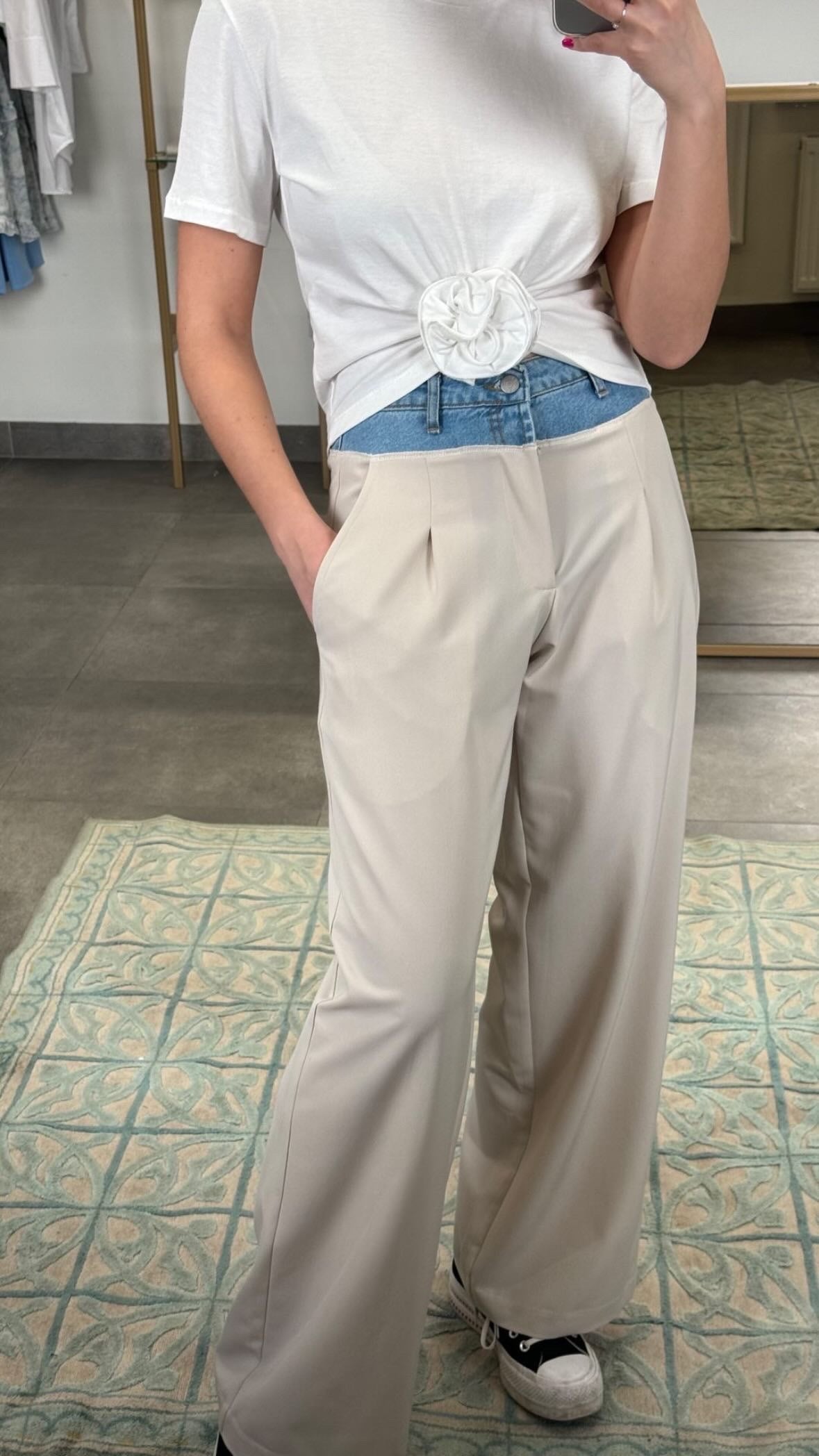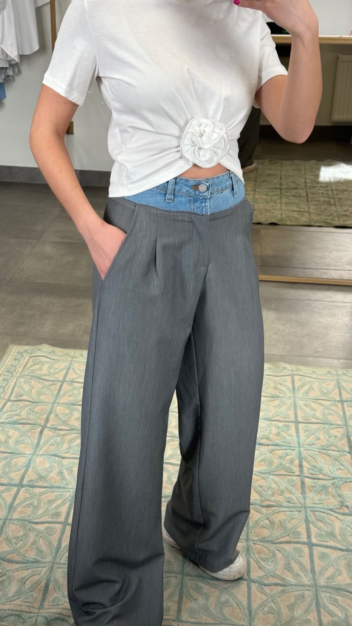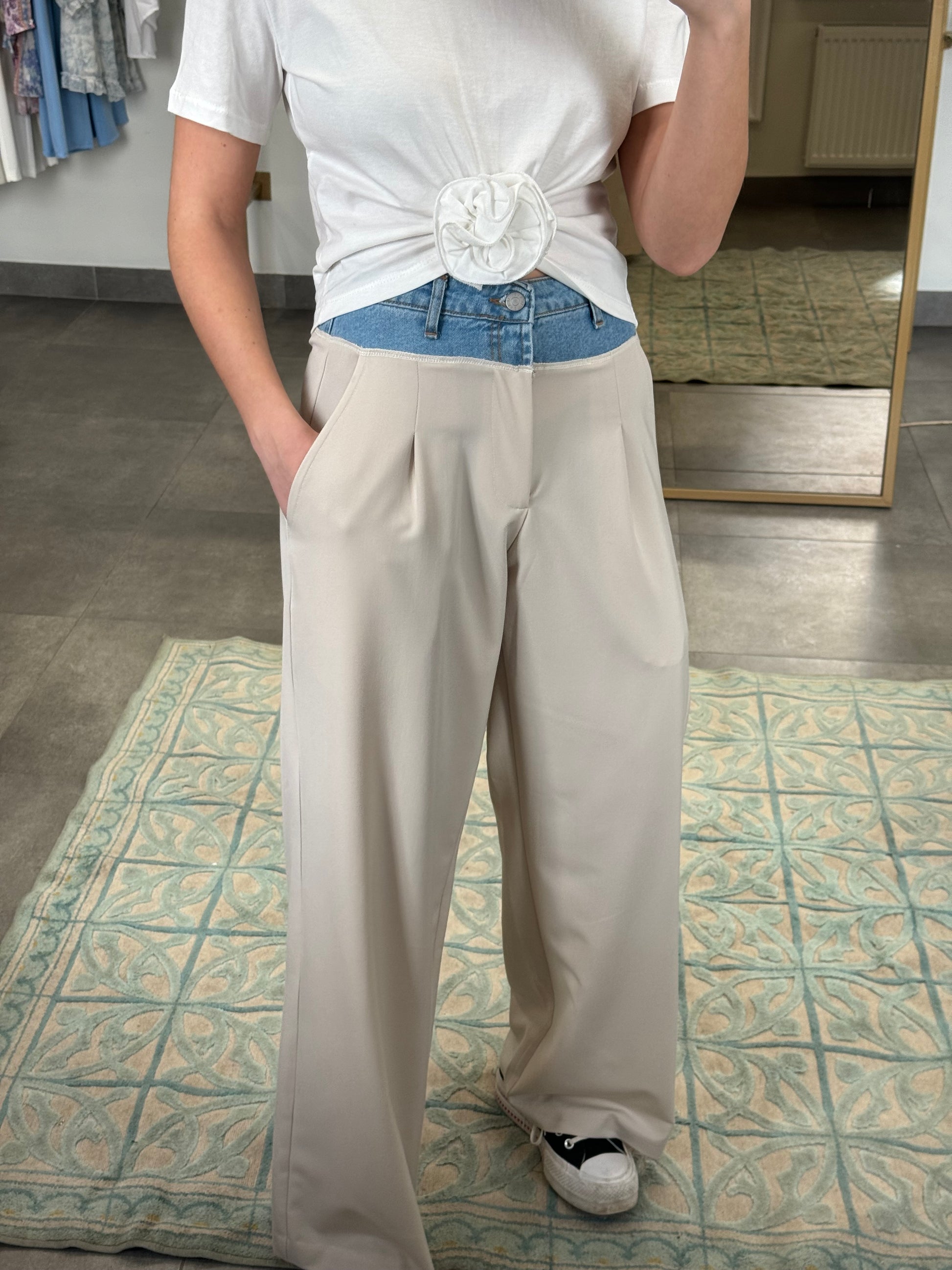 Kelnės su džinso detalėmis