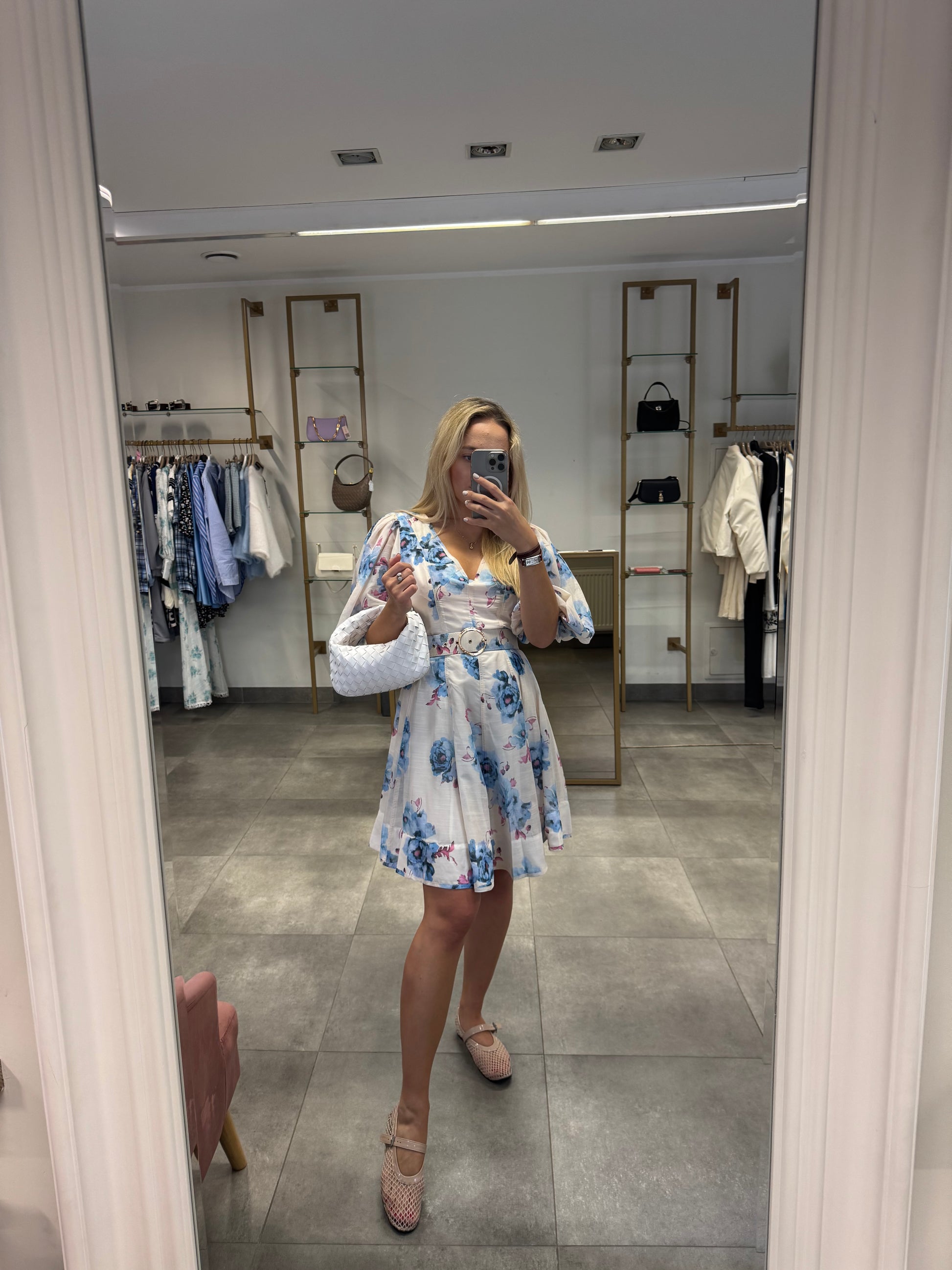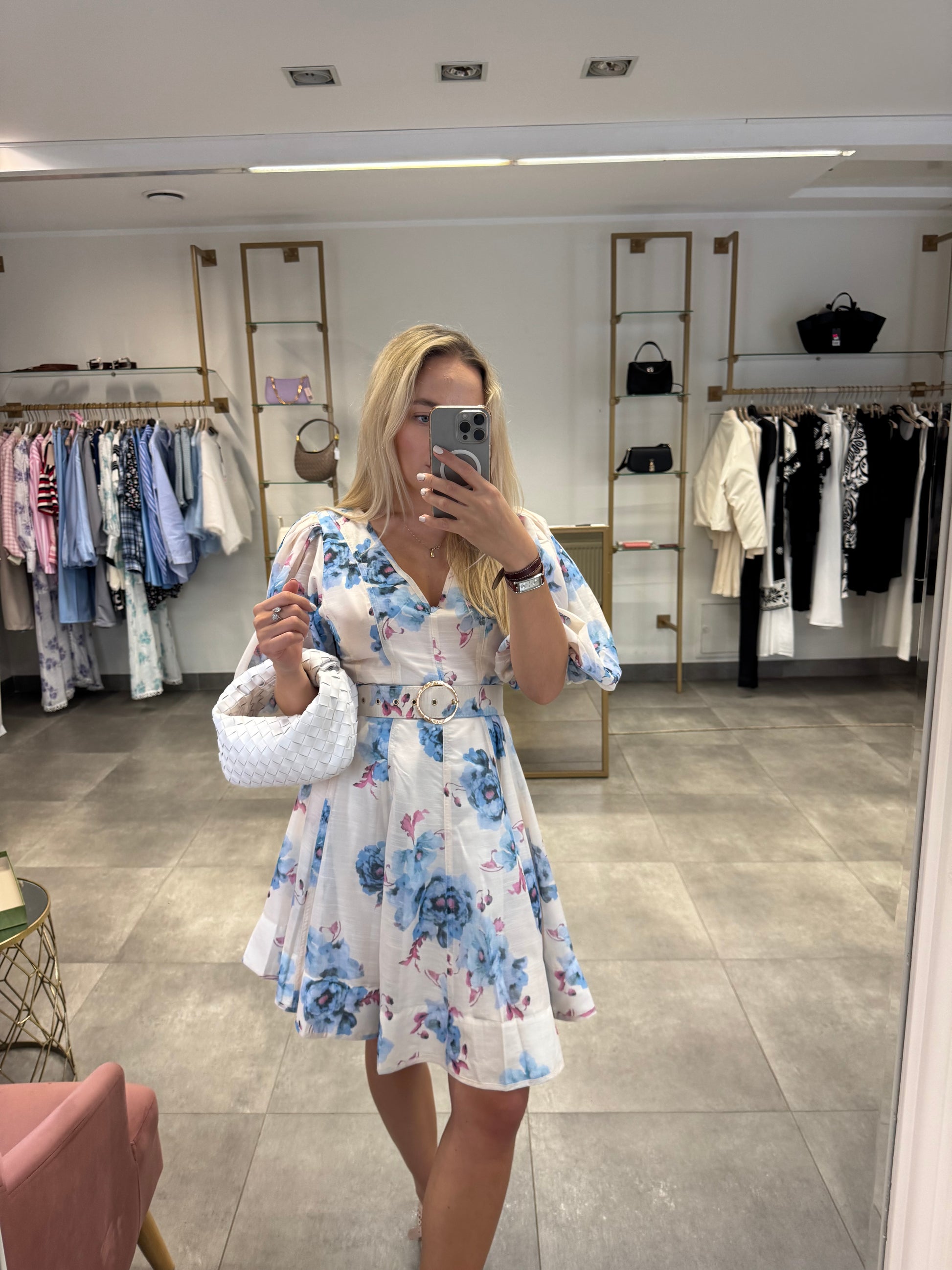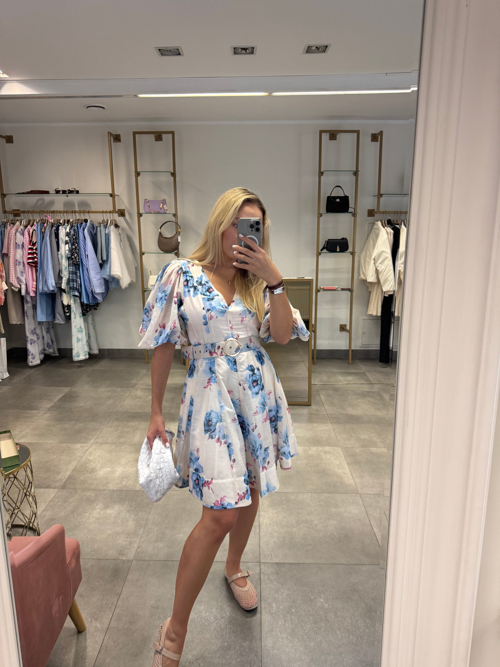 Suknelė pūstomis rankovėmis