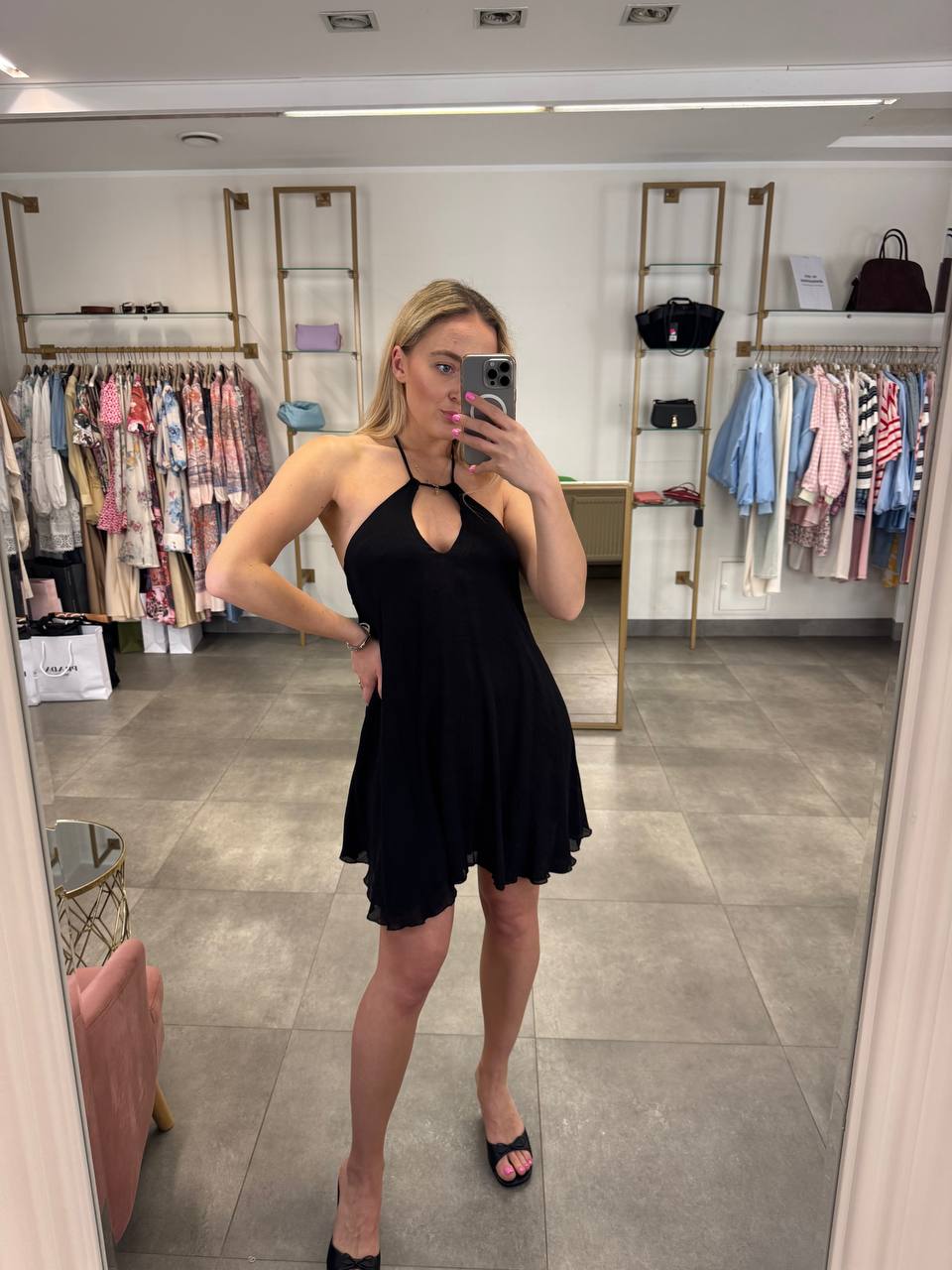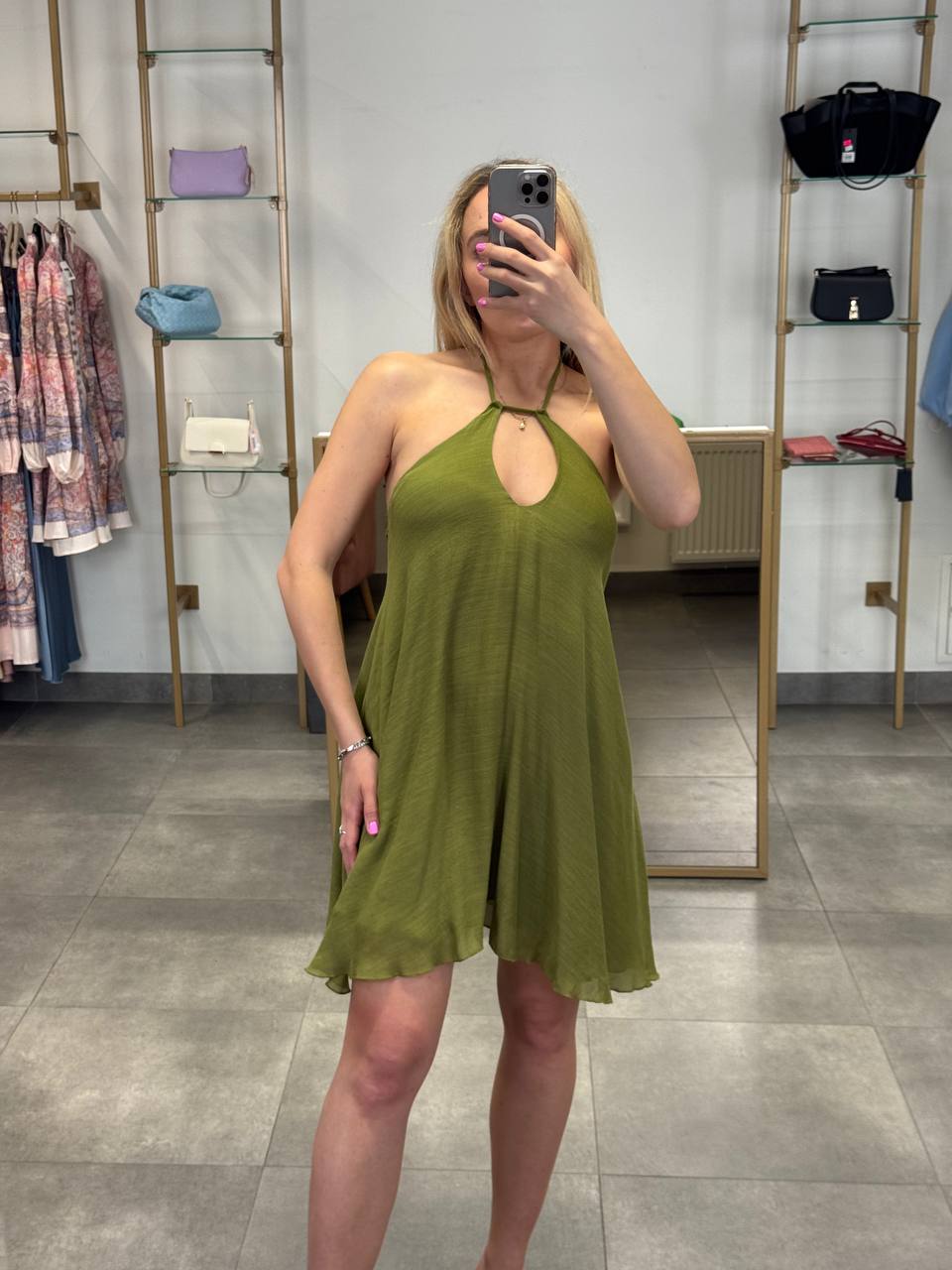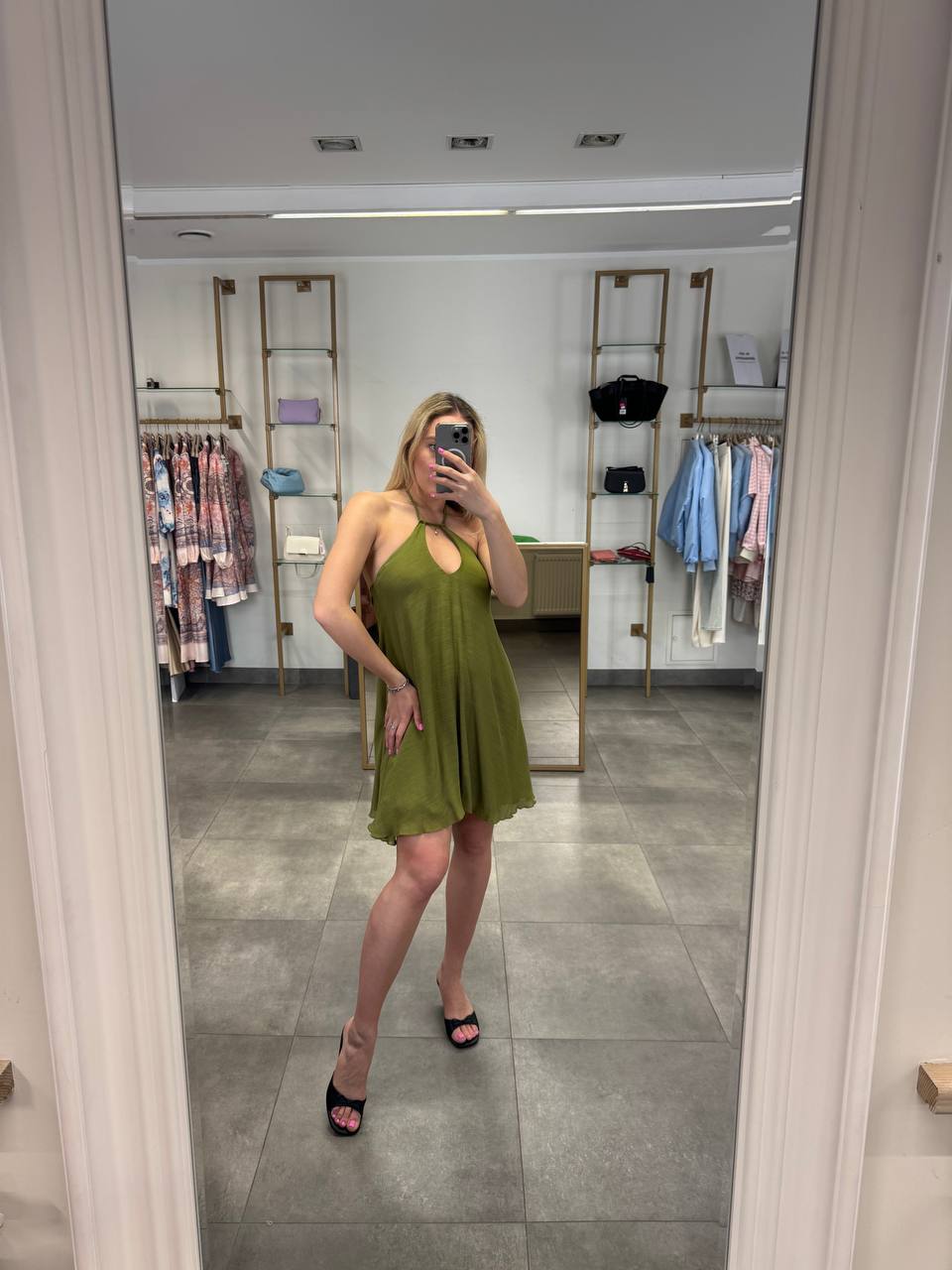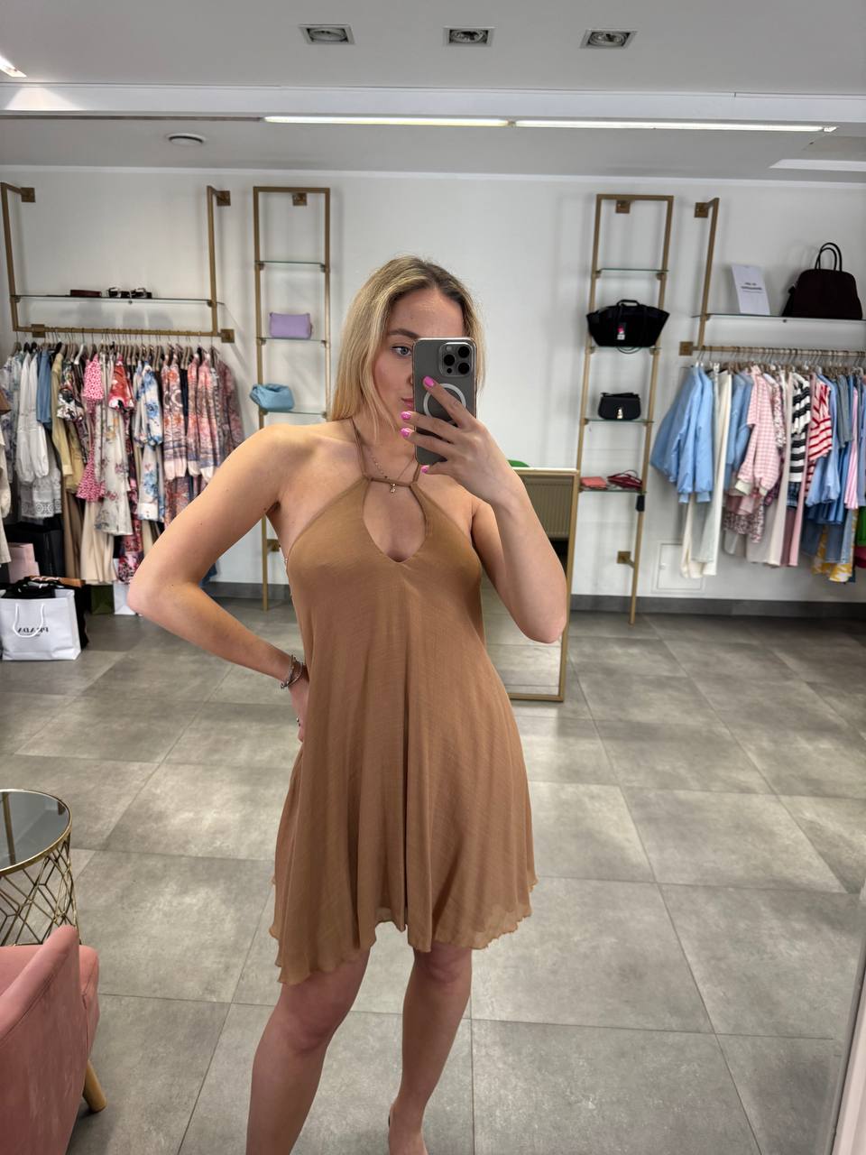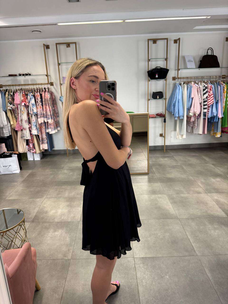 Nugaroje susiriša kaspinas, turi užtrauktuką.
